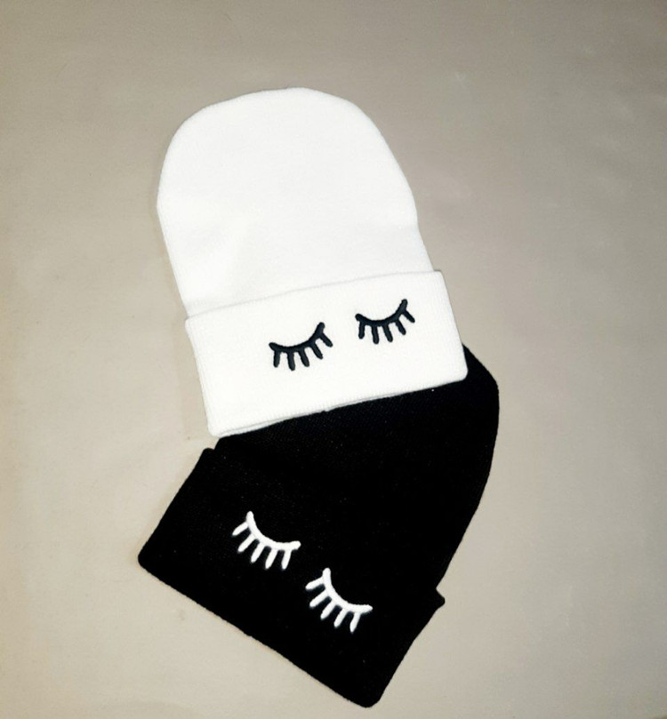 کلاه بافت طرح مژه سفید و مشکی