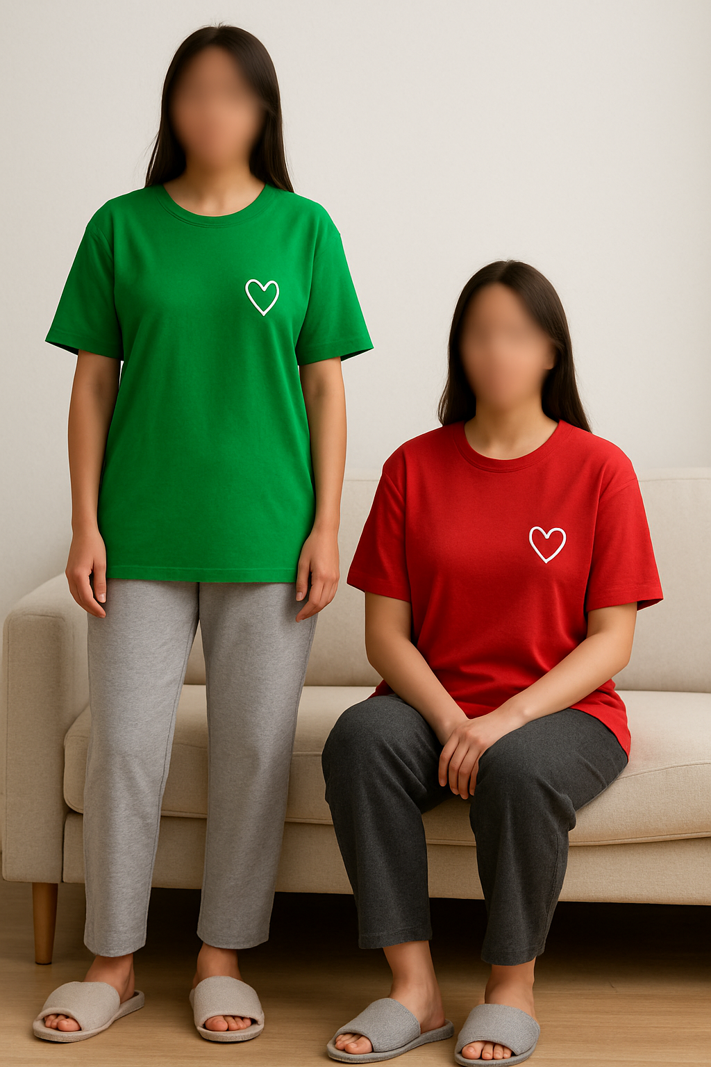 تیشرت نخ پنبه زنانه قواره متوسط طرح تک قلب