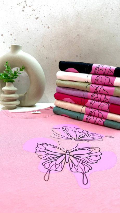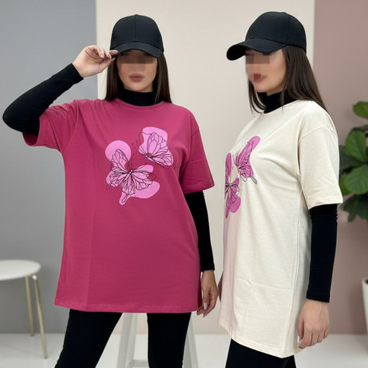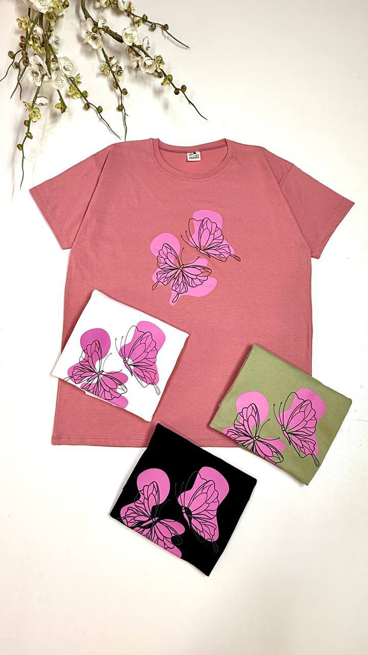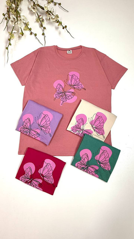 تیشرت نخ پنبه زنانه طرح پروانه قواره بزرگ