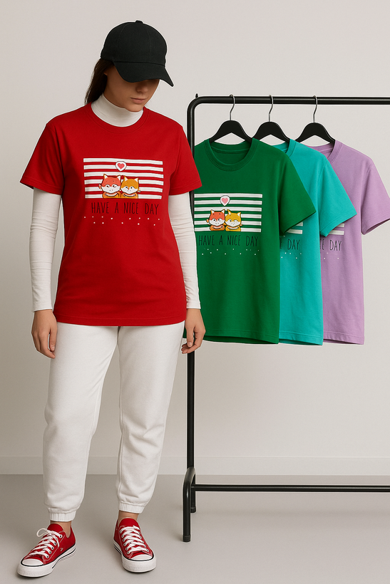 تیشرت نخ پنبه زنانه طرح بچه روباه فانتزی