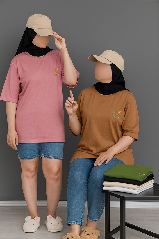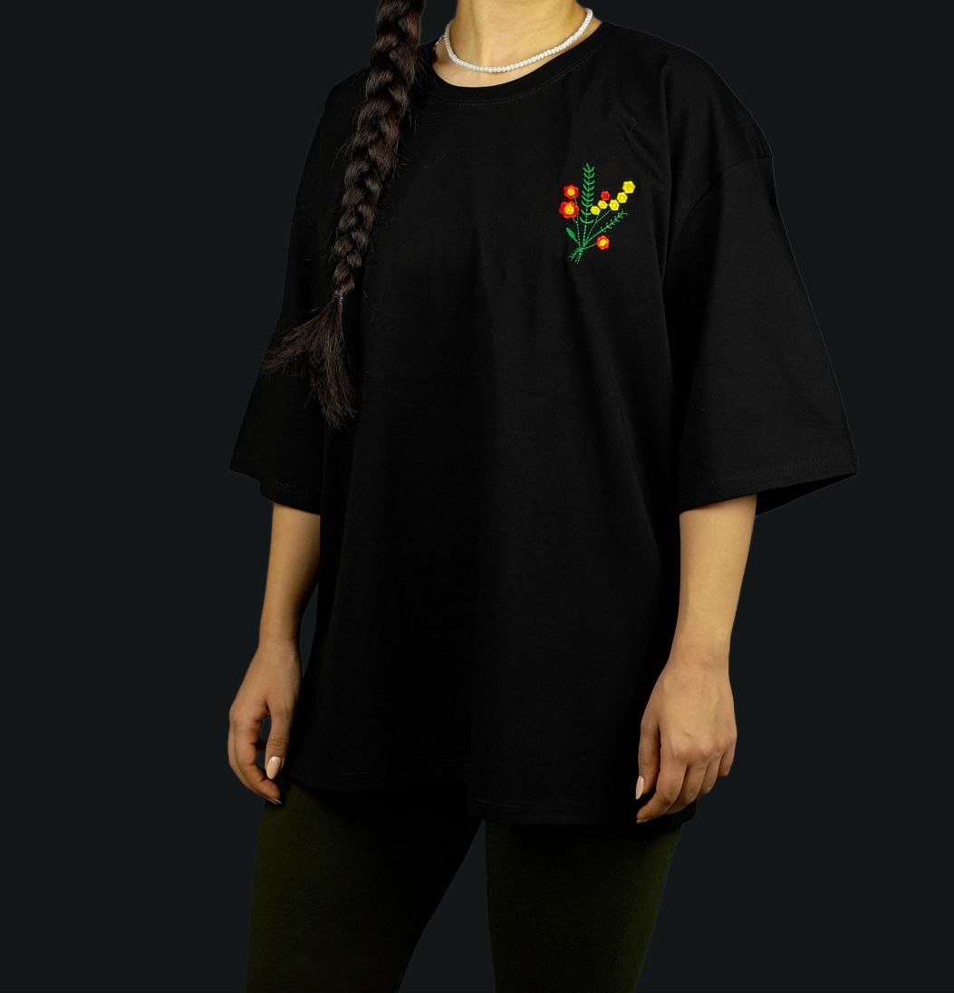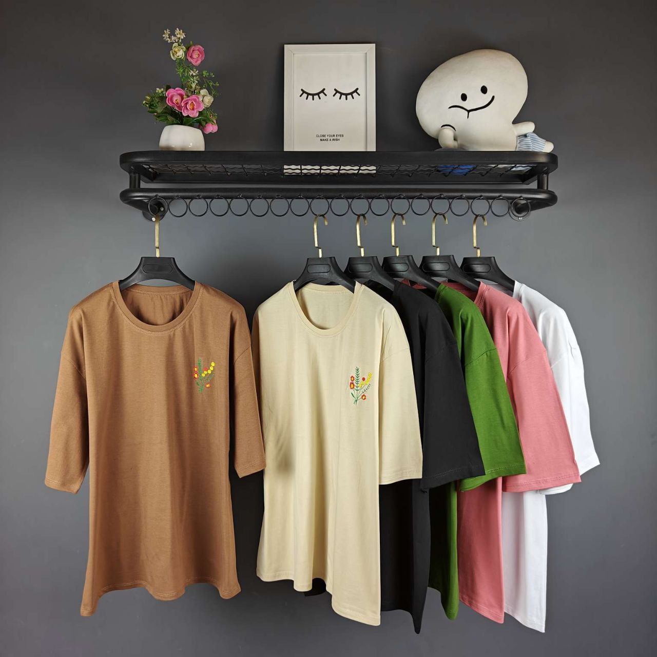 تیشرت نخ پنبه زنانه تک رنگ گلدوزی شده قواره بزرگ 3xl
