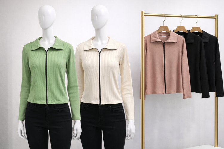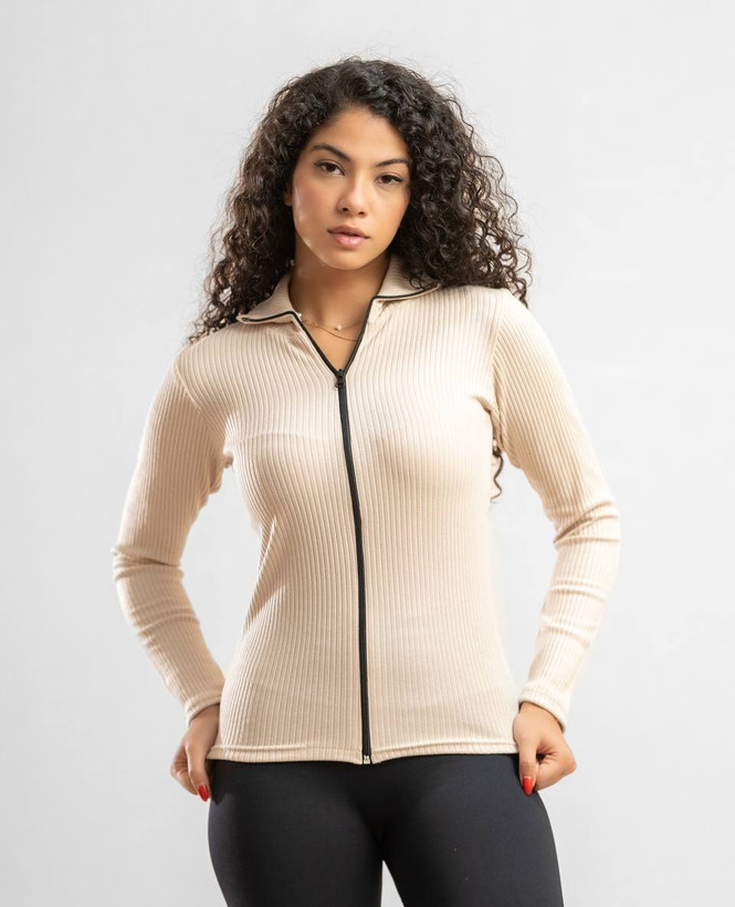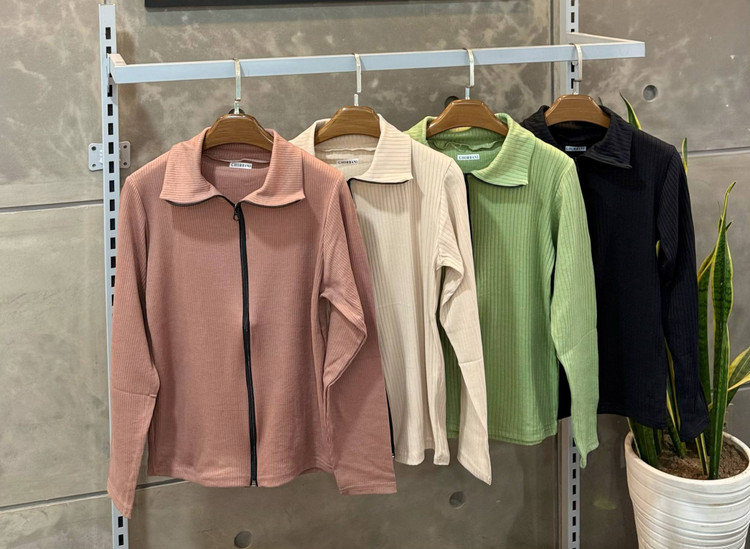 بلوز زنانه آستین بلند جذب یقه دار جلو زیپ فانریپ پنبهای فول کشی فیری سایز تا۴۶رنگبندی