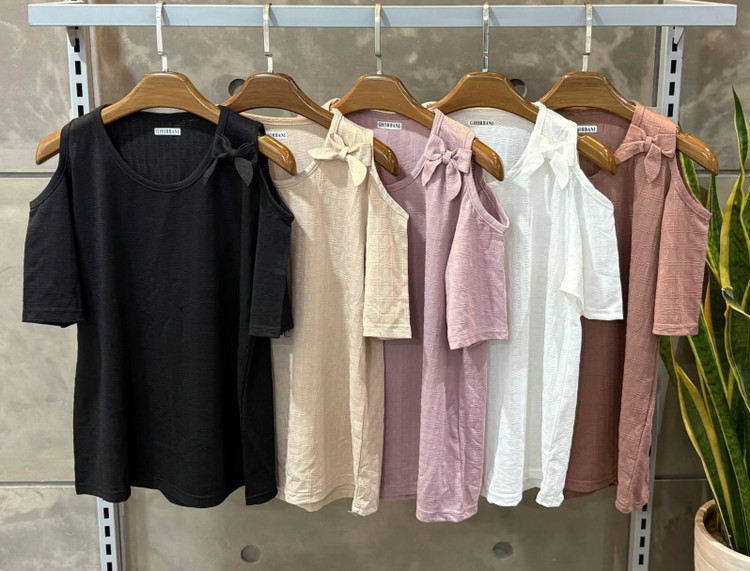 تیشرت مجلسی زنانه سرشانه باز پاپیون دار