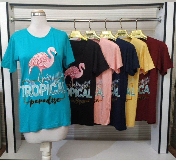 تیشرت ویسکوز پنبه زنانه طرح فلامینگو