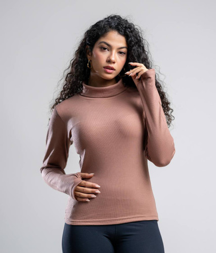 بلوز زنانه آستین بلند یقه اسکی آستین فینگردار مدل فانریپ پنبهای فول کشی فیری سایز تا۴۶رنگبندی